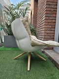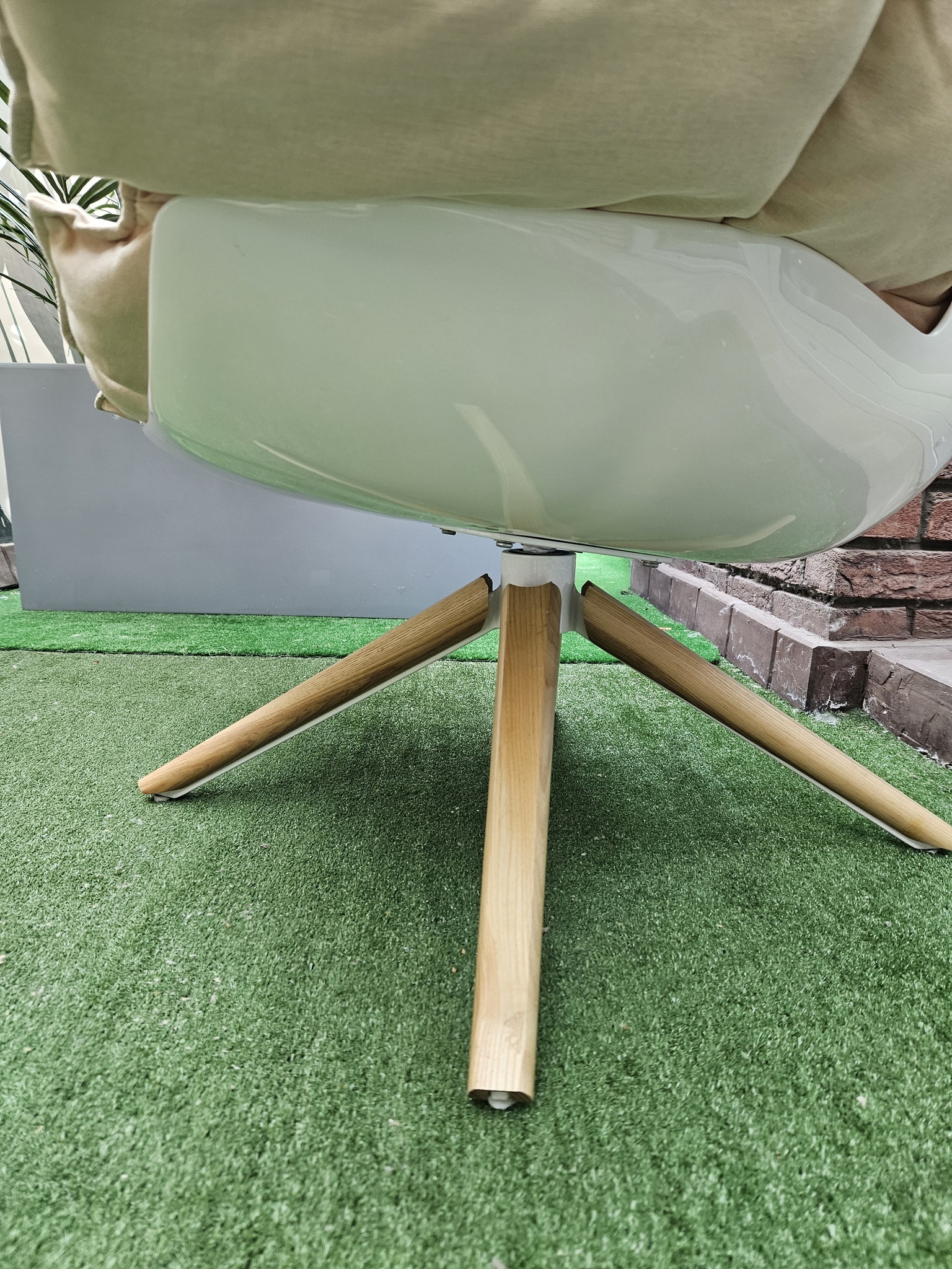 Базовая модель представлена в бежевом цвете, однако, подушку возможно выполнить на заказ в любой обивке, каркас возможен в разных цветах, а ножки кресла могут быть деревянными или металлическими.
