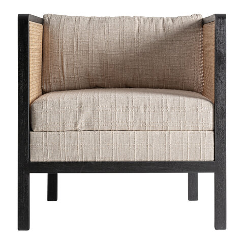 Кресло Kaleb от VICAL сочетает в себе естественную теплоту древесины манго с легкостью кремовой ткани. Его черный каркас элегантно обрамляет сетчатое плетение, создавая игру текстур, располагающую к расслаблению. Это изделие, сочетающее в себе современность и мастерство, идеально подходит для проектов, стремящихся к спокойствию и современному характеру. Ширина: 73 см, Глубина: 73 см, Высота: 77 см