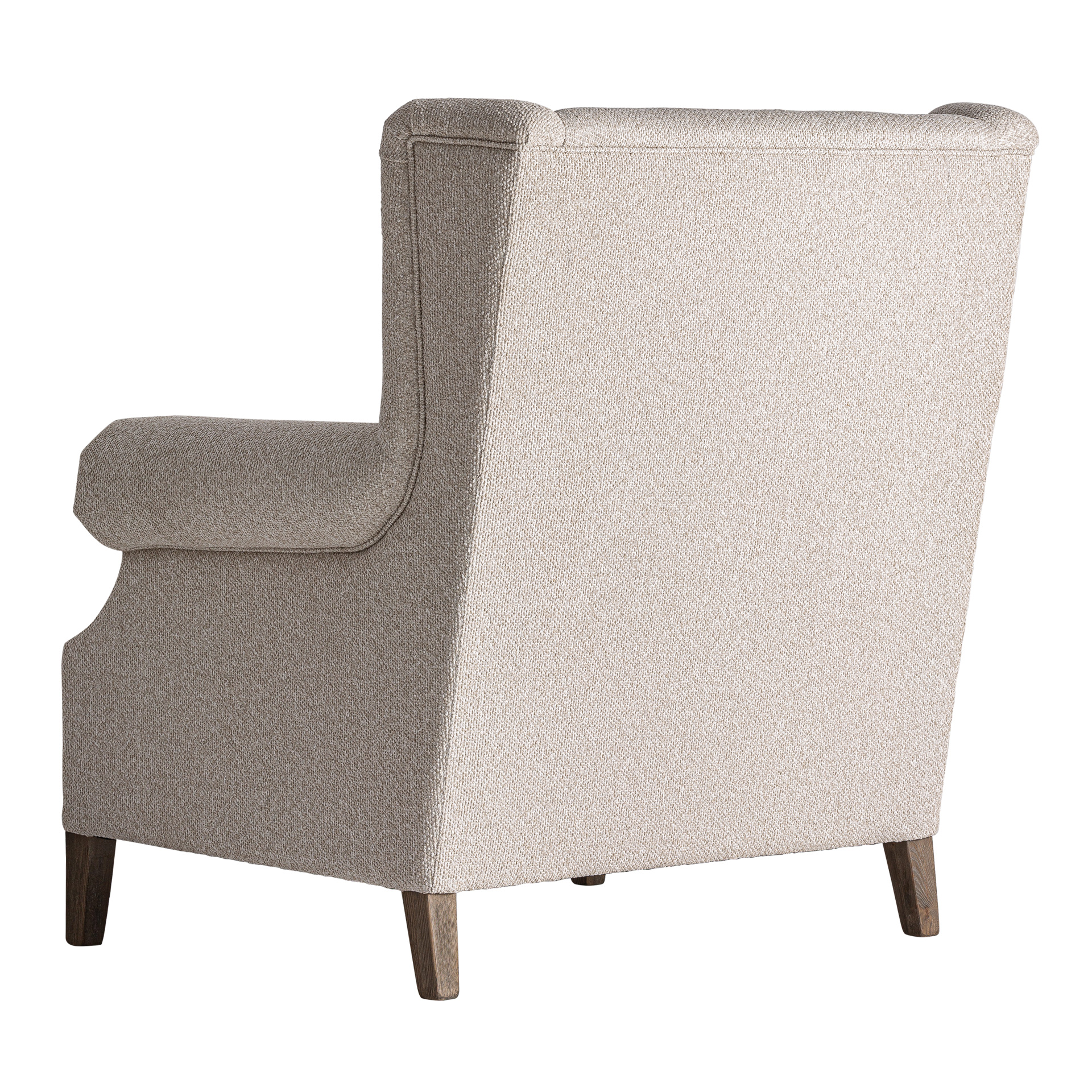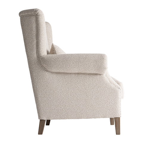 Кресло Leiston в классическом стиле, изготовлено из коричневого ясеня в сочетании с кремовым полиэстером. Изделие разборное. Ширина: 108 см, Глубина: 93 см, Высота: 109 см