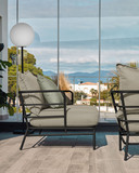 Кресло Mareluz из черной стали от фабрики La Forma (ex Julia Grup) – абсолютная практичность и долговечность. Кресло Mareluz – это ультрасовременный и минималистичный стиль, который наверняка оценят поклонники прогрессивных дизайнов. Здесь сталь задает тон всему изделию, показательно сковывая массивные подушки. Такая модель отлично подойдет для современных уличных или домашних интерьеров, станет отличным местом для отдыха. Кресло имеет сварную металлическую конструкцию, созданную из трубок диаметром 2,5 см. Металл окрашен в черный матовый цвет порошковой краской. Она защищает от коррозии, создает цветовую гармонию с подушками. На высоте 15 см от пола ножки дополнительно усилены поперечными перекладинами, которые помогают выдерживать весовую нагрузку (максимально допускается не более 130 кг). На каждой ножке установлен пластичный наконечник, который защищает напольное покрытие от повреждений. Подушки сшиты из полиэстера серого цвета, набиты синтетической пеной плотностью 70 кг/м3 (нижняя) и акриловыми волокнами (верхняя). Чехлы съемные, что облегчает уход за изделием, чистку. Размеры: ширина по ножкам – 59 см, высота – 60 см, глубина – 76 см, глубина сиденья – 70 см. Вес изделия – 12,5 кг. Поставка осуществляется в собранном виде. В коллекции Mareluz также представлен диван в аналогичном дизайне.