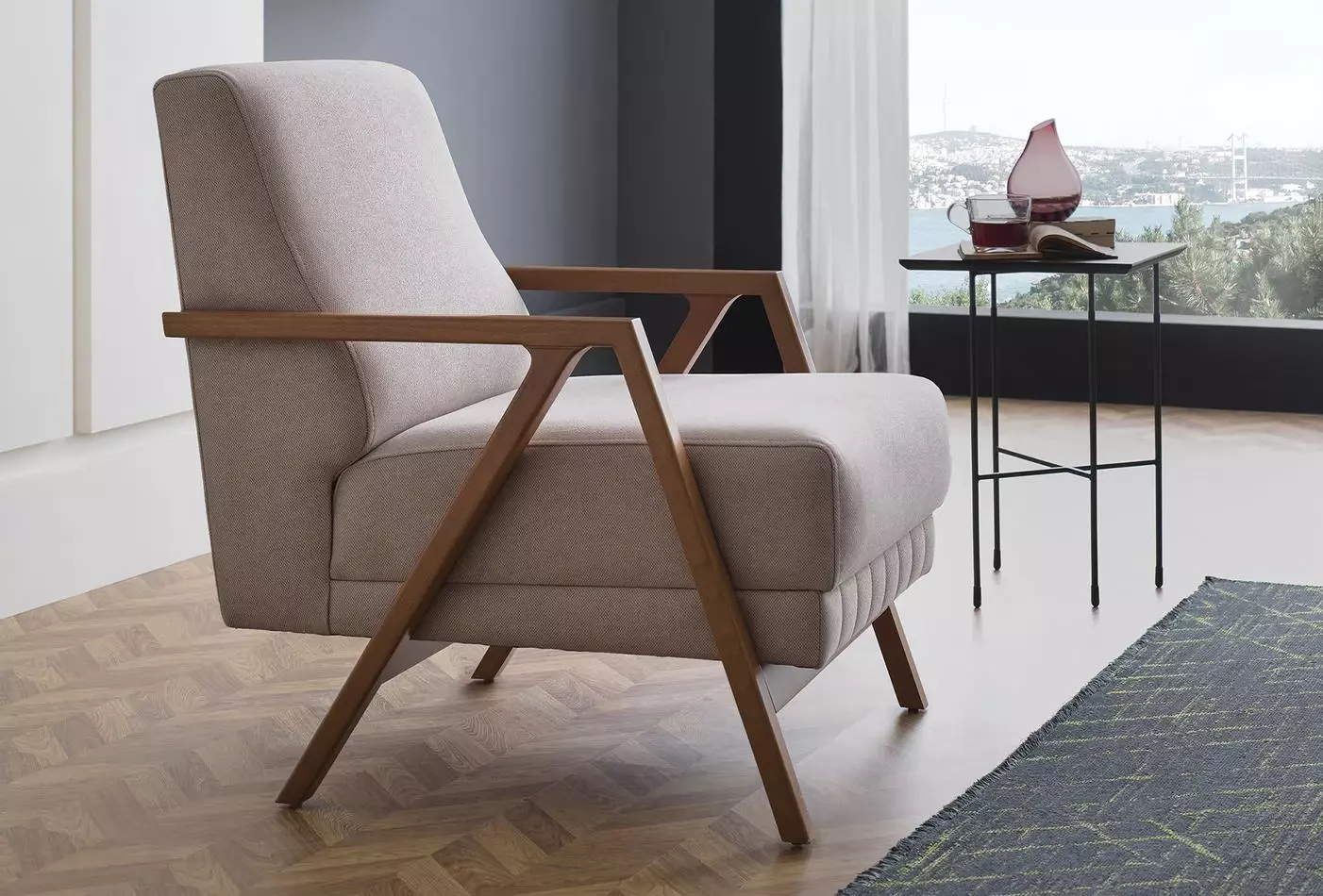 Кресло выполнено в сочетании современного стиля и функционального дизайна, прекрасно дополняет оформление вашей гостиной.