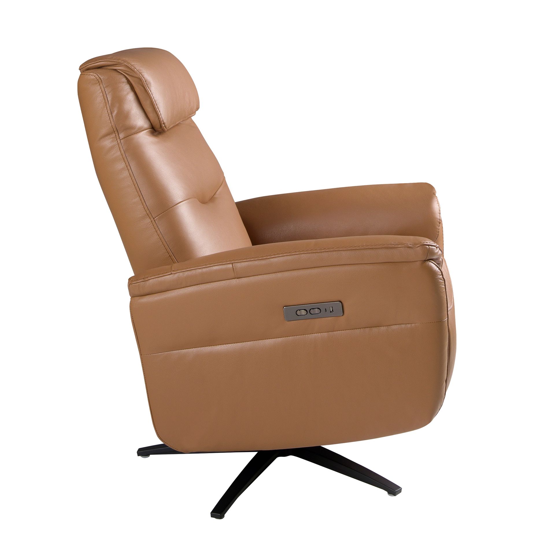 Кресло-реклайнер поворотное 5115/KM6011-M5671 из коричновой кожи