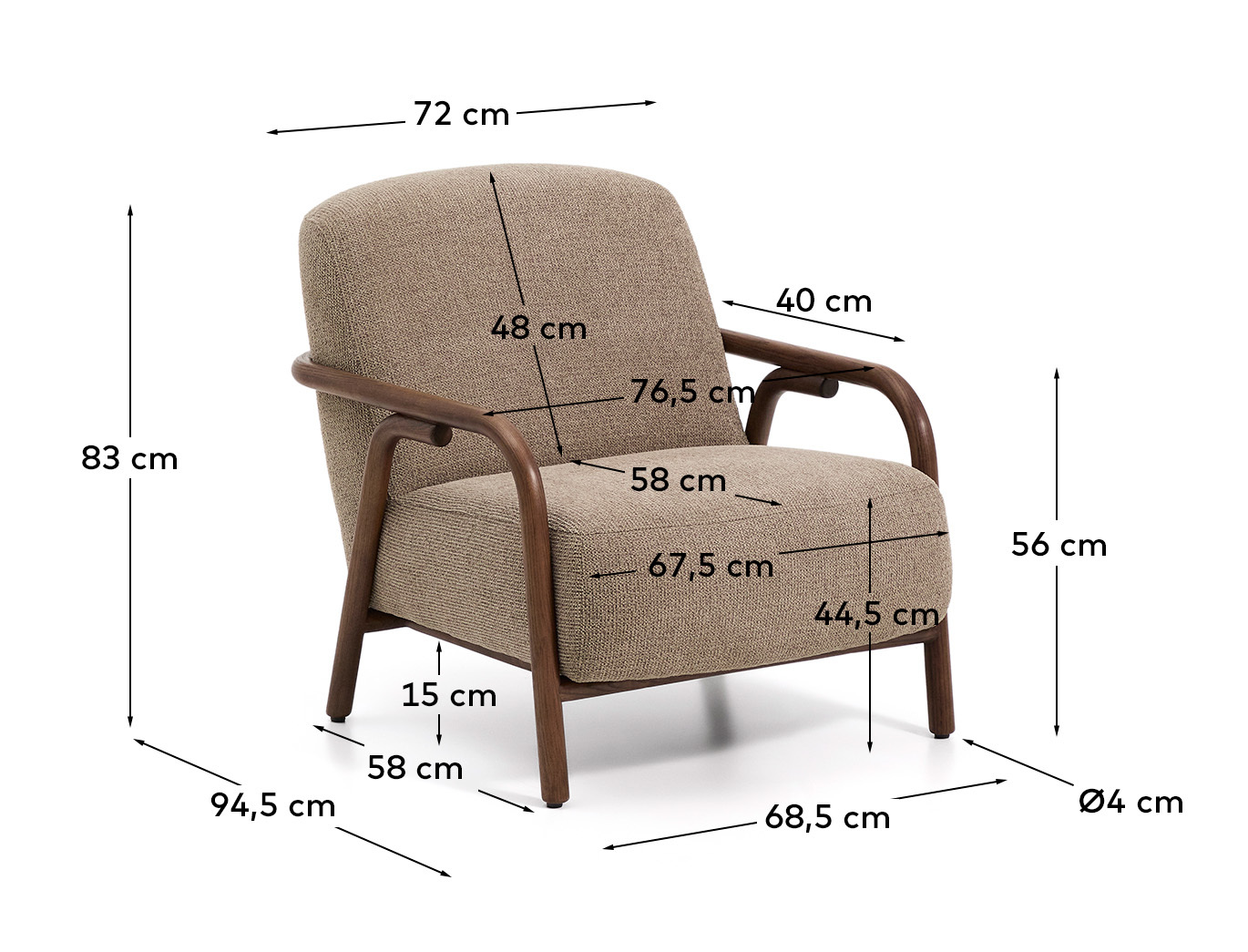 Кресло Sylo из серо-коричневого шенилла и ясеня с отделкой цвета орех