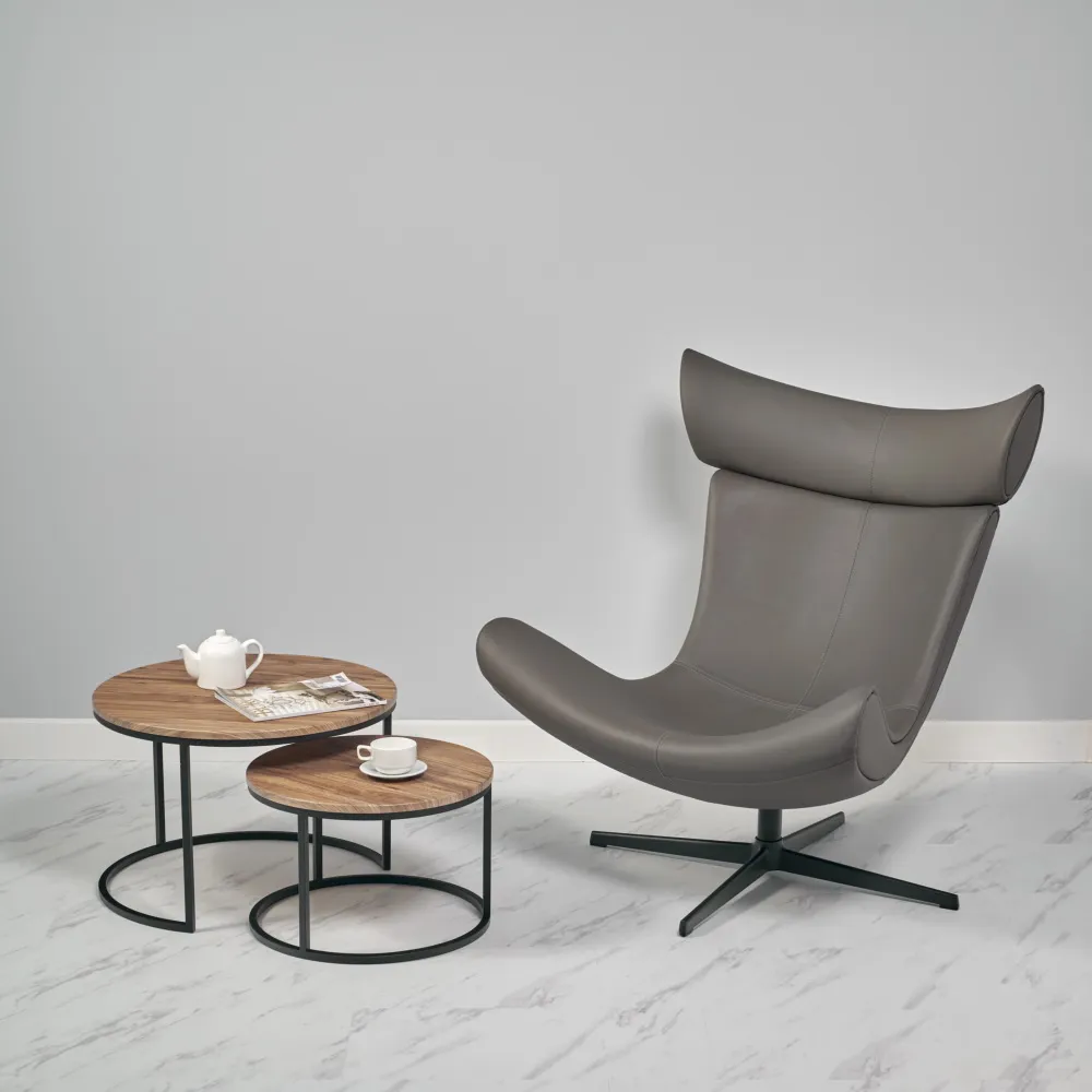 Высокая изогнутая спинка и приподнятое вверх сиденье словно приглашают вас присесть и самостоятельно оценить непревзойденный комфорт кресла Toro.