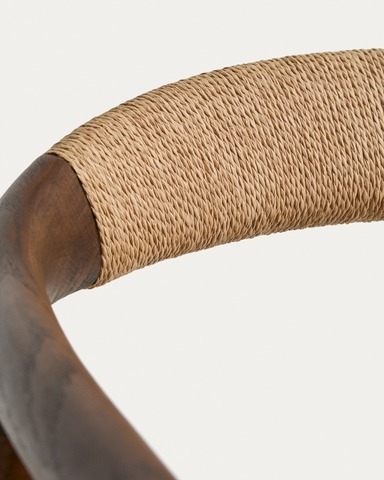 Derile сочетает в себе ручную работу и сбалансированные пропорции в изделиях, которые передают ощущение гармонии и тепла. Изготовленная из массива дуба, сертифицированного по стандарту FSC™ 100% с соблюдением цепочки поставок и модели ответственного лесопользования, конструкция имеет уникальную текстуру, раскрывающую характер материала. Матовое покрытие подчеркивает текстуру древесины и придает ей аутентичный вид. Сиденье и спинка сплетены вручную из бумажного шнура — легкого материала, обеспечивающего комфорт и сбалансированный визуальный эффект.