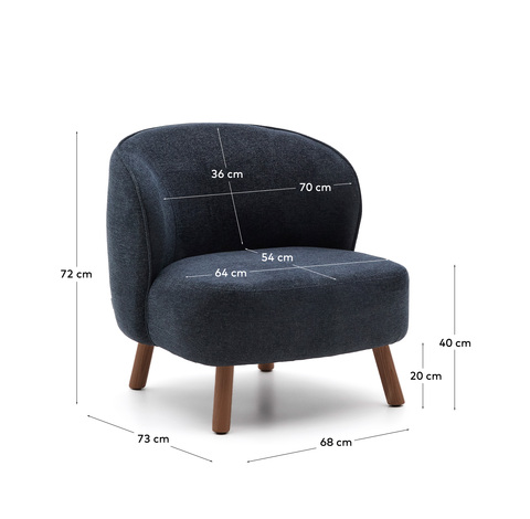 Кресло Ulit из сине-серой синели с ножками из ясеня с отделкой под орех