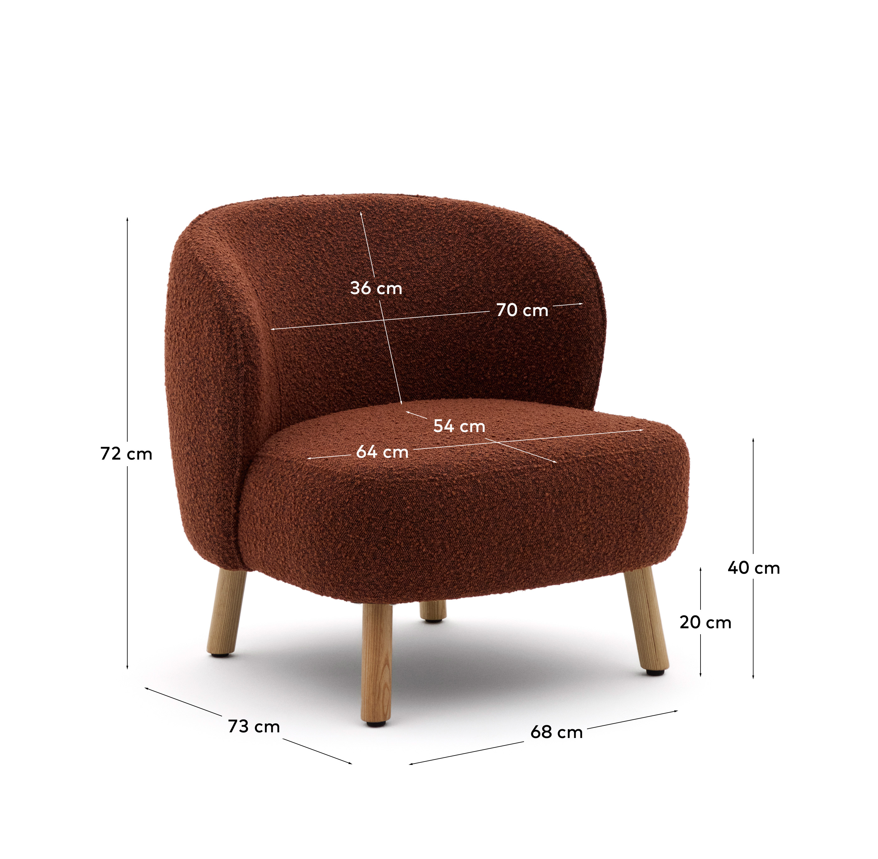 Кресло Ulit из терракотового букле с ножками из бука в натуральной отделке