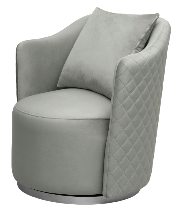 Модель VERONA, обитая велюром в мятном оттенке, объединяет в себе качество, стиль, оригинальный дизайн, современные мотивы, удобство и функциональность. Этот велюровый материал прочный, красивый, приятный на ощупь. Комфортная форма сидения позволяет удобно расположиться в кресле без ощущения скованности в спине. Стильное мятное кресло идеально впишется в гостиную, спальню, кабинет, салон красоты, дизайн интерьера которых выполнен в современных стилях — арт-деко, неоклассика, контемпорари, фьюжн, бохо. Диаметр металлической части основания - 58см, высота - 3,5см. В стандартном исполнении: обивка из ткани  Colt025-MINT, основание - полированная нержавеющая сталь с глянцевой фактурой (хром).