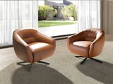 Кресло вращающееся современного дизайна с сиденьем и спинкой, обитыми коричневой воловьей кожей. Благодаря своему стилю и ножкам из нержавеющей стали, окрашенным черной эпоксидной краской, это кресло вращающееся является идеальным сочетанием дизайна и комфорта.