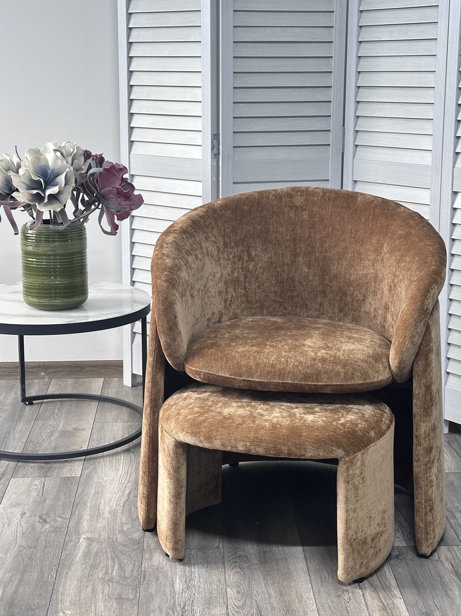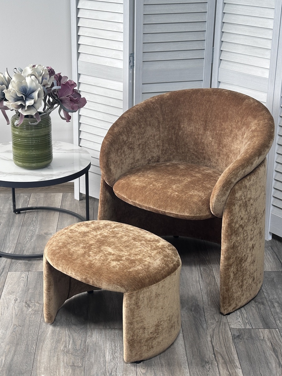 Кресло+оттоманка ХАГ (HUG) AT5139-13 Коричневый, ткань/ каркас металл в обивке, ®DISAUR