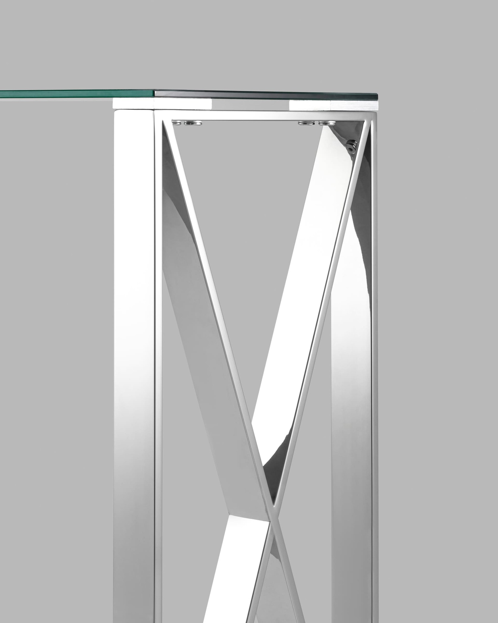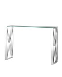 Консоль КРОСС 115*30 серебро каркас нержавеющая сталь столешница закаленное стекло