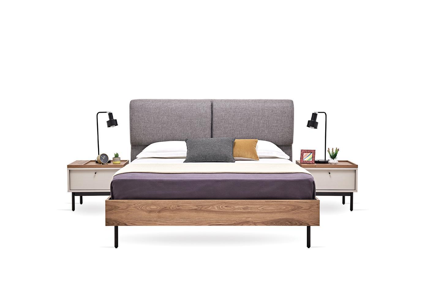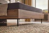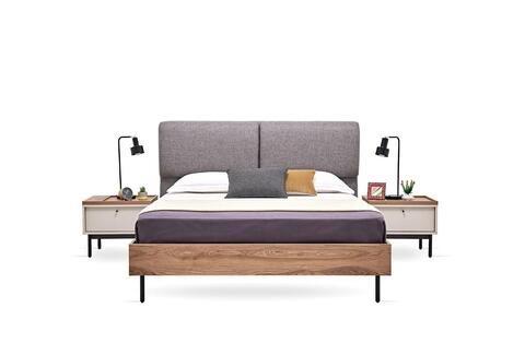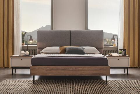Коллекция Loreto — это сочетания индустриального стиля и эко. Кровать возможно исполнить в различных вариантах ткани обивки. Ножки – металлические.
