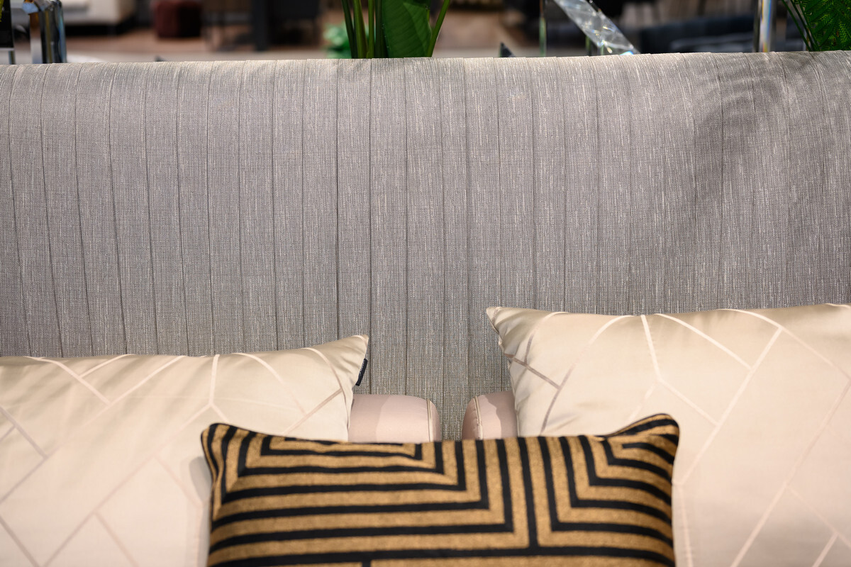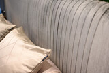Кровать выполнена в стиле Ар-деко. Мягкое изголовье декорировано вертикальной стежкой. Основание кровати обито тканью из ассортимента фабрики в тон изголовья. Поставляется без матраса и постельных принадлежностей.