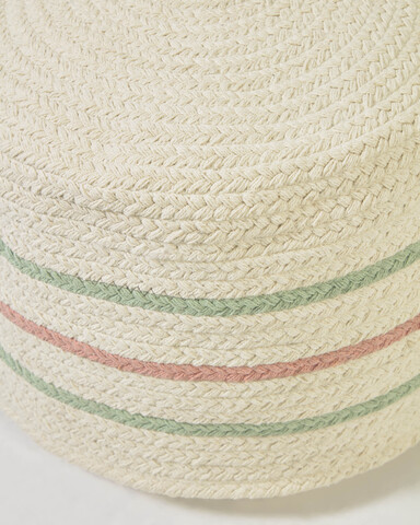 Круглый пуф Daiana от фабрики La Forma (ex Julia Grup) – придайте спальне вашего ребенка веселый и оригинальный колорит. Пуф Daiana безусловно найдет свое место в каждой детской комнате. Он станет идеальным компаньоном для любой игры, пригодится в интерьере. Его хлопковая фактура безопасная и нежная. А несколько предлагаемых расцветок позволят выбрать оптимальный вариант для своего дизайна. Пуф имеет форму цилиндра, состоит из хлопкового чехла и синтетического гипоаллергенного наполнителя. Фактура чехла плетеная. Цвет зависит от выбранной модели (светло-розовый, салатовый, бежевый с декоративными цветными полосами). Чистить Пуф рекомендуется мягким моющим средством, без применения абразивов, отбеливателей. Чехол допускается стирать в машинке. Размеры: ширина – 30 см, высота – 40 см, глубина – 40 см Вес изделия – 1,3 кг. В коллекцию Daiana также входит круглый напольный коврик с полосатым орнаментом.