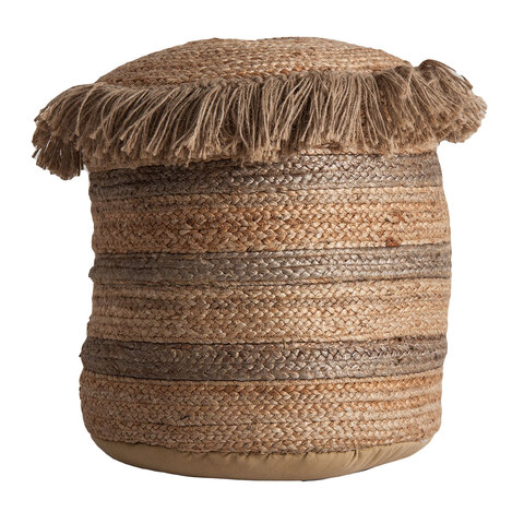 Круглый пуф тассароло, натуральный цвет, винтажный стиль. Изготовлен из джута в сочетании с хлопком.