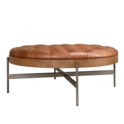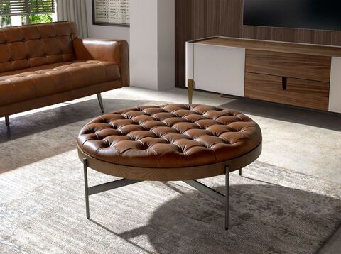 Круглый журнальный столик 2147 из темно-коричневой кожи