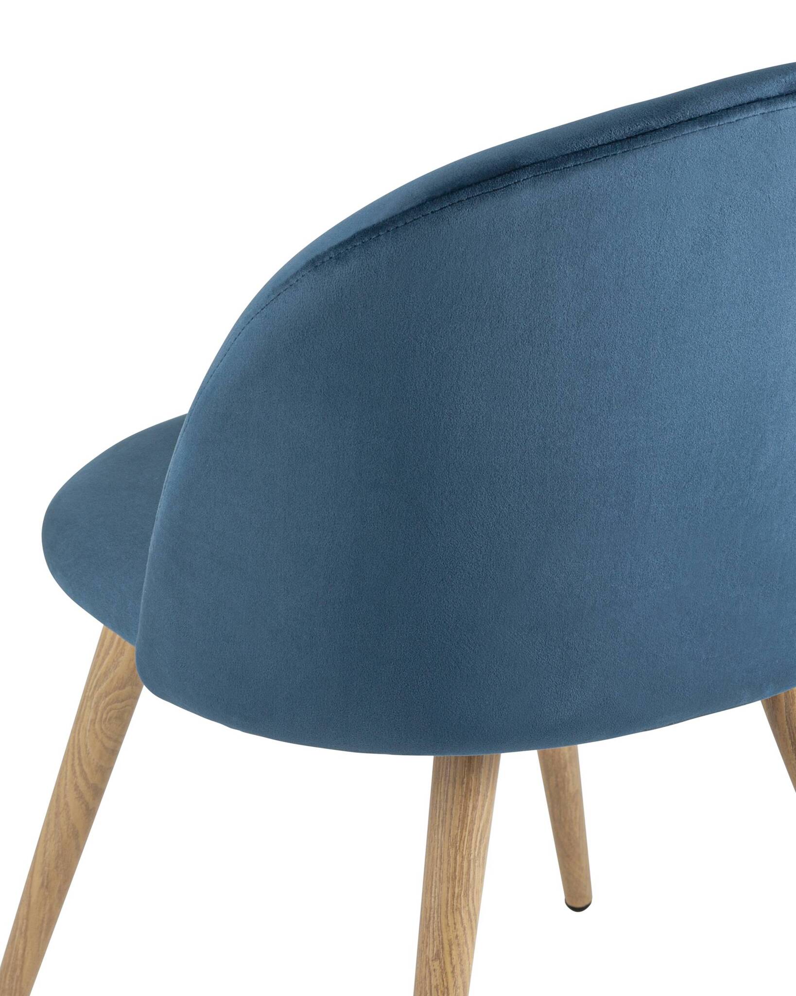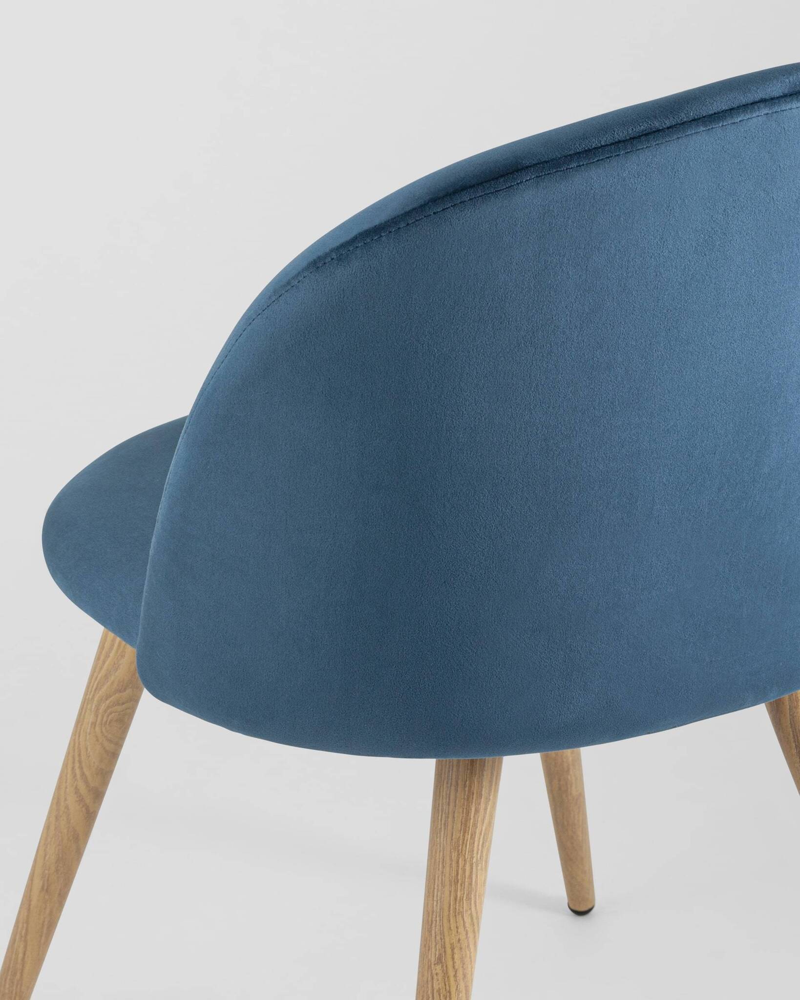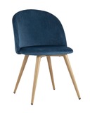 Стул Stool Group Лион голубой, сиденье и спинка из голубого велюра, ножки из металла с принтом под натуральное дерево