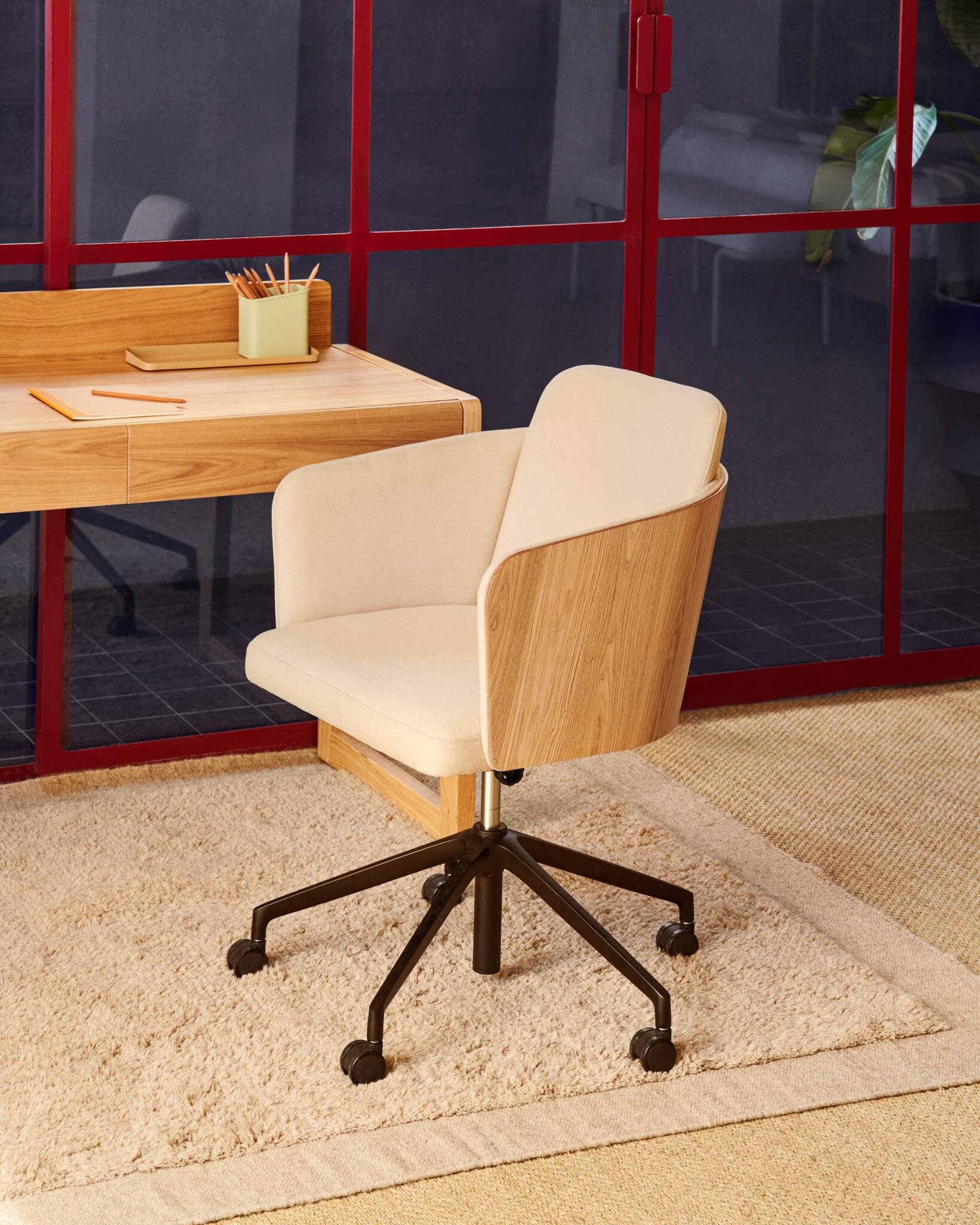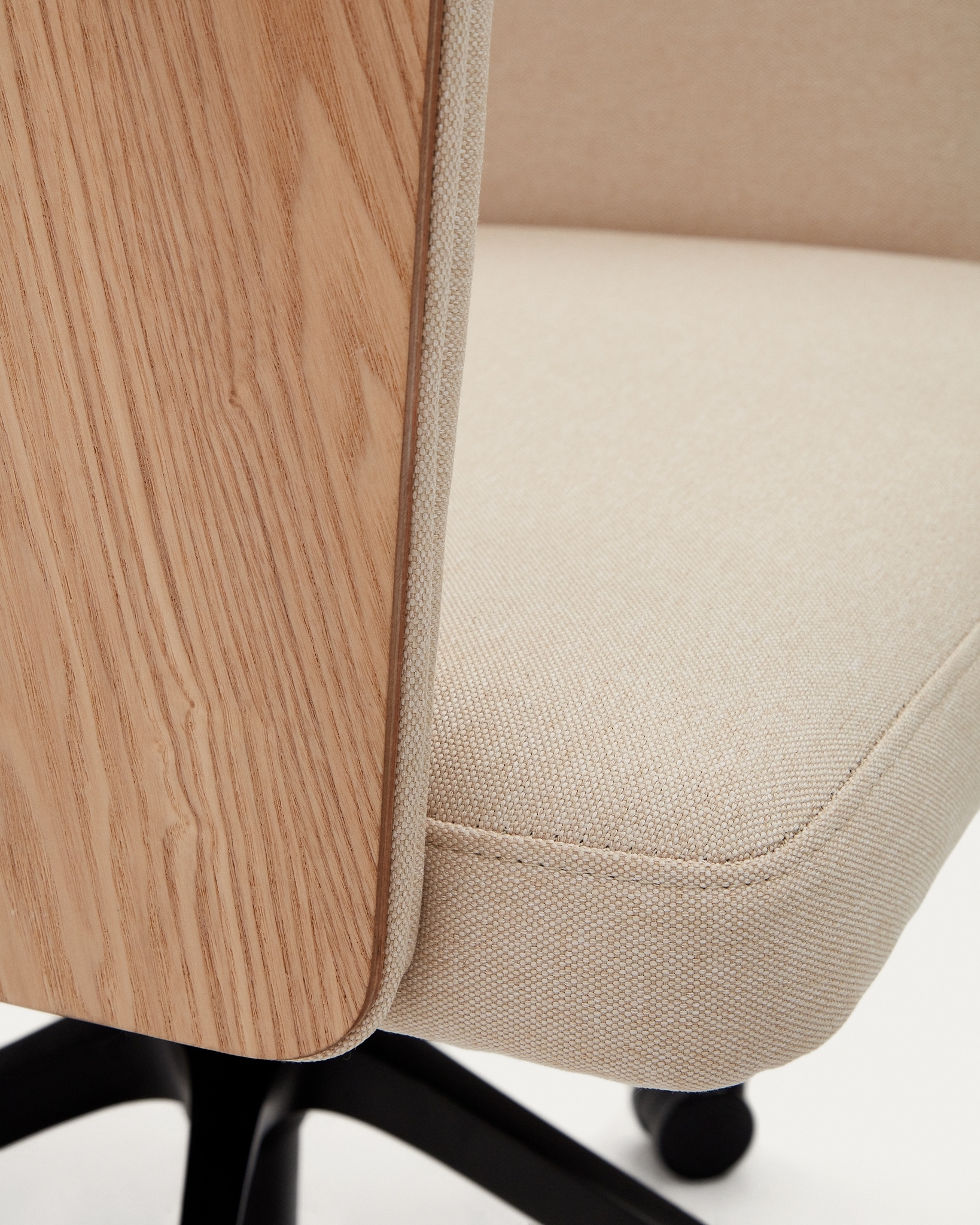 Madai Офисный стул из бежевой синели и ясеневого шпона с натуральной отделкой