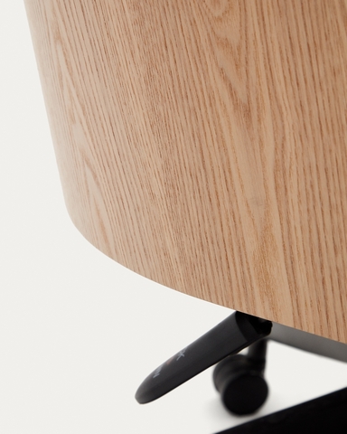 Офисный стул Madai от фабрики La Forma (ex Julia Grup) – рабочая конструкция в домашнем дизайне. Офисный стул Madai – это дизайн, универсальность и комфорт. Работайте над своими проектами с удобством, благодаря изогнутой спинке с отделкой из шпона ясеня, мягкой и практичной обивке, поворотной конструкции. Madai идеален для вашего кабинета! Стул Madai состоит из металлической стойки и цельного сиденья. Внешняя сторона сиденья отделана шпоном ясеня, внутренняя обшита синелью. Этот материал прочный, износостойкий, с мягкой фактурой. Для ощущения длительного комфорта сиденье смягчено синтетической пеной средней жесткости. Ножка выполнена из алюминия, оснащена подъемным и поворотным механизмами, колесами. Для защиты от повреждений, нижняя часть окрашен в черный цвет эпоксидной краской. Максимальная весовая нагрузка на кресло – 130 кг. Размеры: ширина – 58 см, глубина – 59 см, высота – 77-89 см. Потребуется минимальная сборка. Чистка без отбеливания и агрессивной химии.