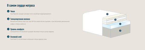 • B Гипоаллергенное волокно. Memosoft мягко облегает силуэт тела. Super Soft Fiber является мягким и дышащим, а также обеспечивает дополнительный комфорт и гигиену во время сна.