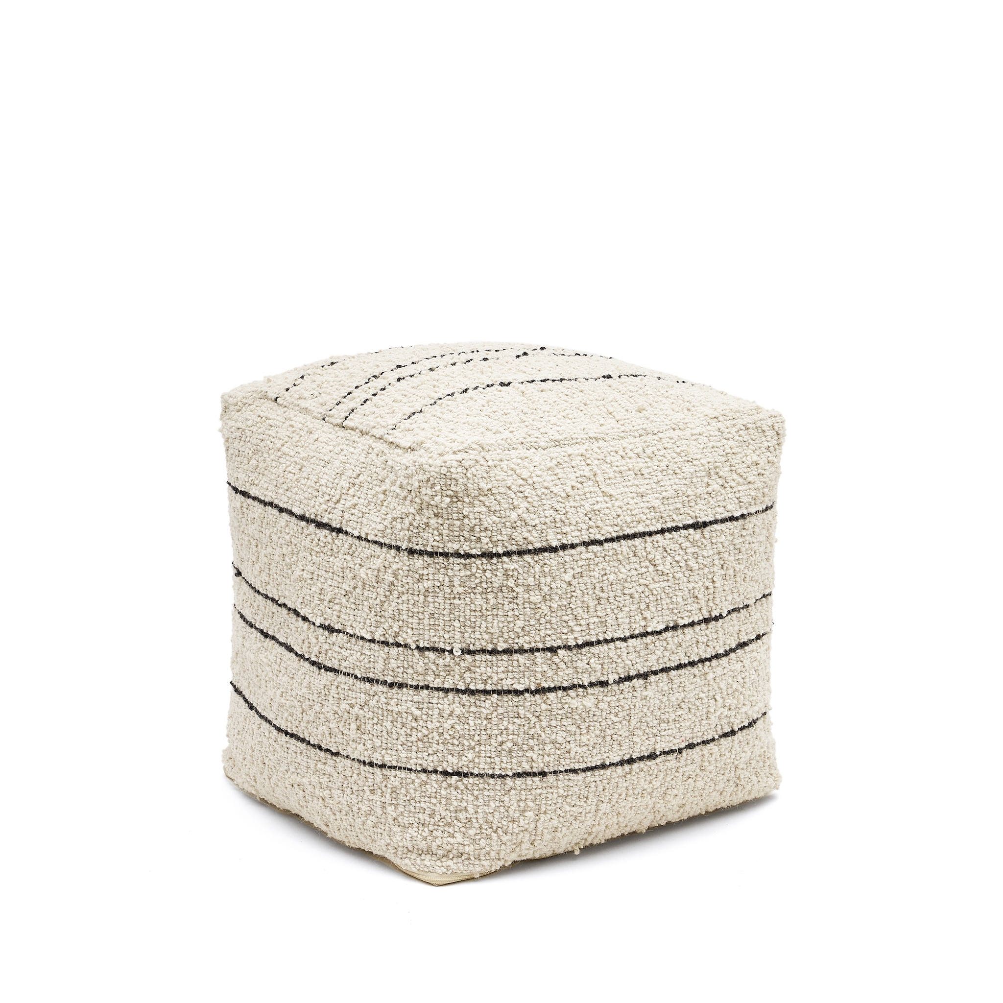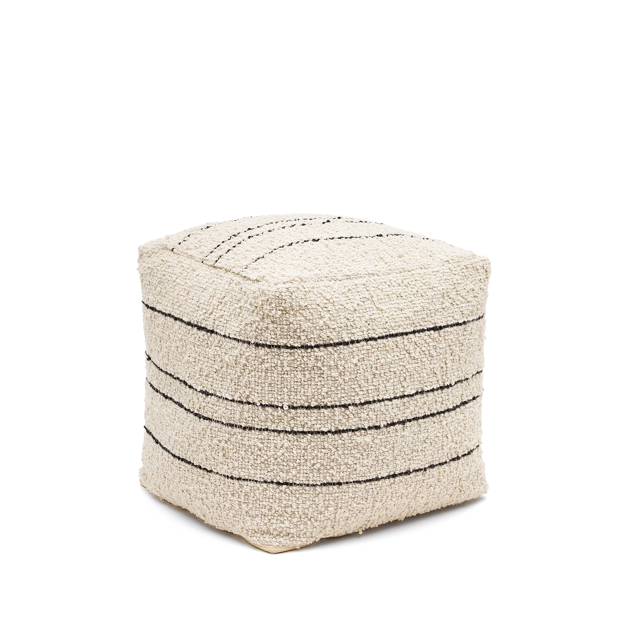 Micol Пуф из шерсти бежевого цвета с черными полосками 40 х 40 см