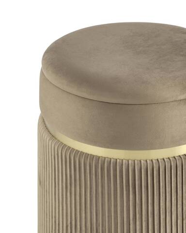 Пуф Миранда с ящиком велюр бежевый с декоративным золотым ободком