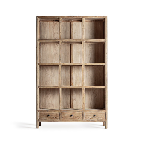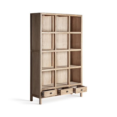 Модульный книжный шкаф Brecey в колониальном стиле. Изготовлен из переработанной древесины вяза, светло-коричневого цвета. Ширина: 120 см, Глубина: 38 см, Высота: 190 см
