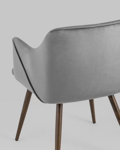 Стул Stool Group Монарх серый, широкая эргономичная спинка, удобные подлокотники, обивка плотная ткань, металлические ножки с принтом под дерево