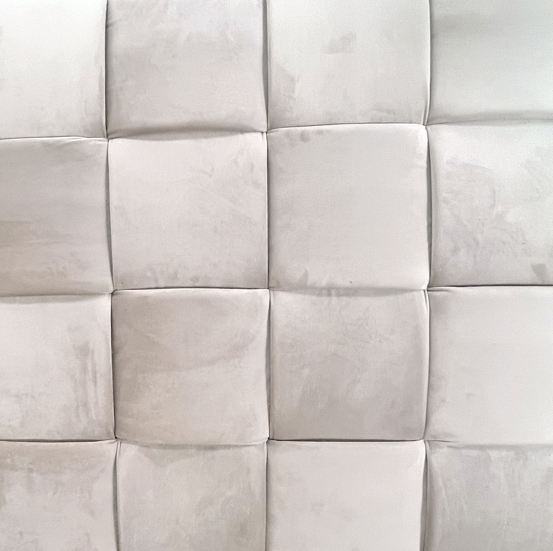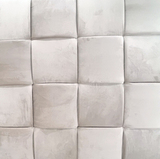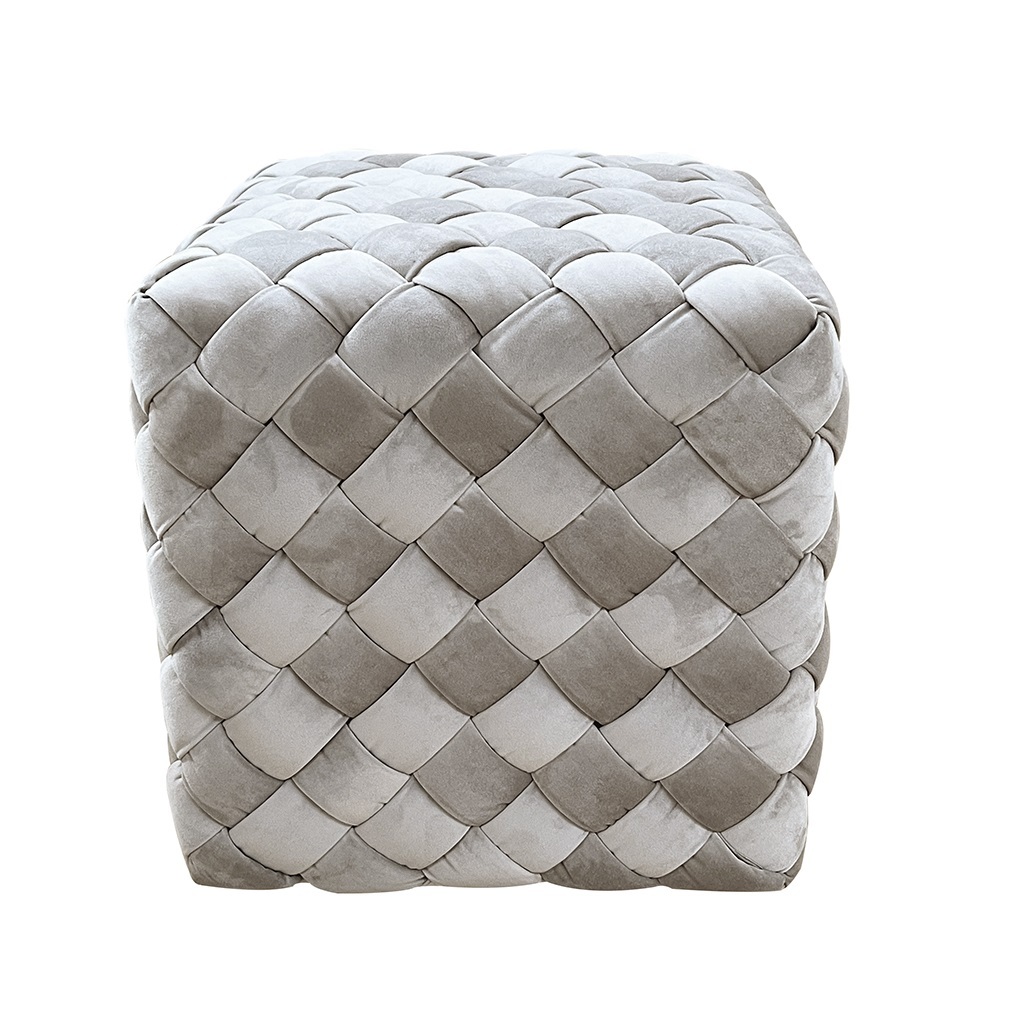 Необычный пуфик с интересной отделкой сиденья из плетеных лент ткани с наполнителем ППУ внутри в ромбическом узоре. Нейтральный серо-бежевый цвет велюра и компактность дают возможность вписать такой предмет мебели в разнообразные варианты интерьера.