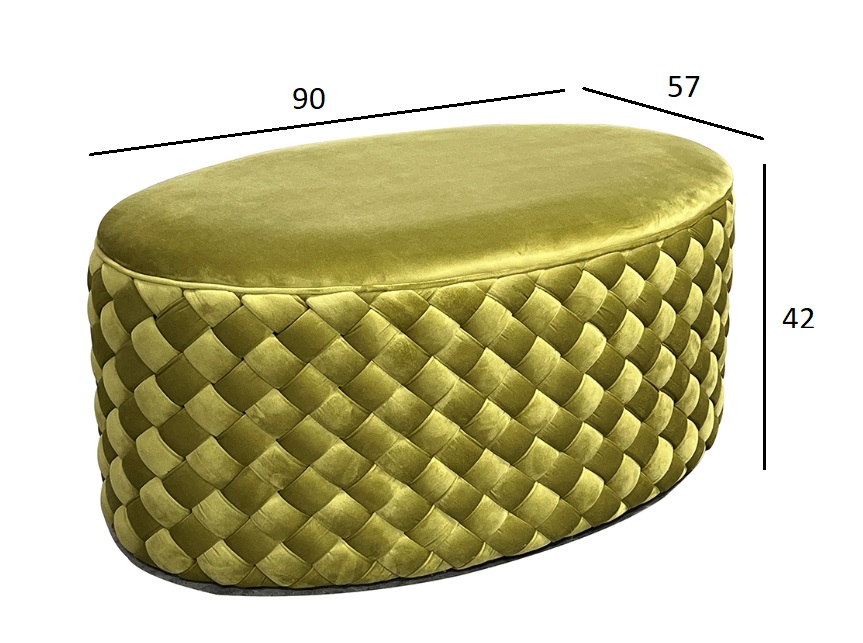 N-PUF305 OLI Пуф овальный плетеный, велюр оливковый 90*57*42см