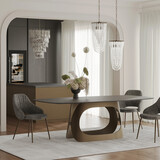 Дизайнерский обеденный стол от бренда Fratelli Barri - идеальное сочетание стиля и функционала. Акцентные металлические ноги и невероятно красивая шпонированная столешница делает этот стол максимально ярким в интерьере. Стол выполнен из высококачественного МДФ высокой плотности. Столешница в отделке натуральный шпон вяза, тонированный в теплый коричневый цвет. Металлическое основание в цвете матовая латунь. Форма стола - мягкий прямоугольник - делает его эргономичным и безопасным. Стол фиксированный, не раскладной. Стол для комфортного размещения 8-10 человек. Данный обеденный стол является частью коллекции Bitti и отлично будет сочетаться с другими предметами коллекции. Вы можете оформить интерьер вашей квартиры или дома в едином стиле. Обеденный стол бренда Fratelli Barri - отличное решение для любой современной столовой.