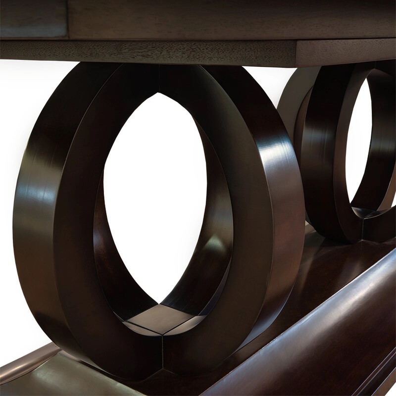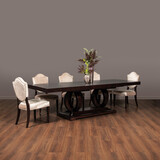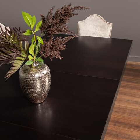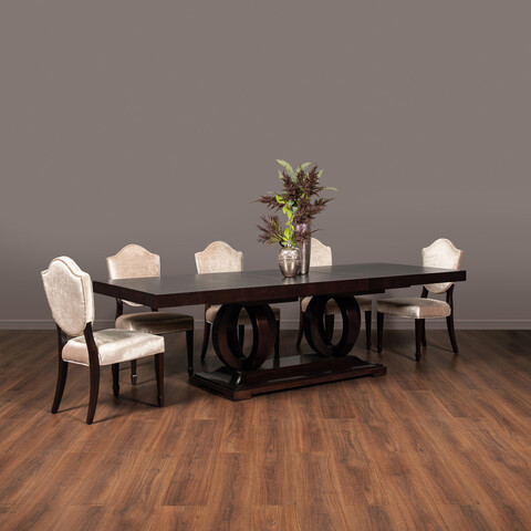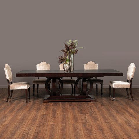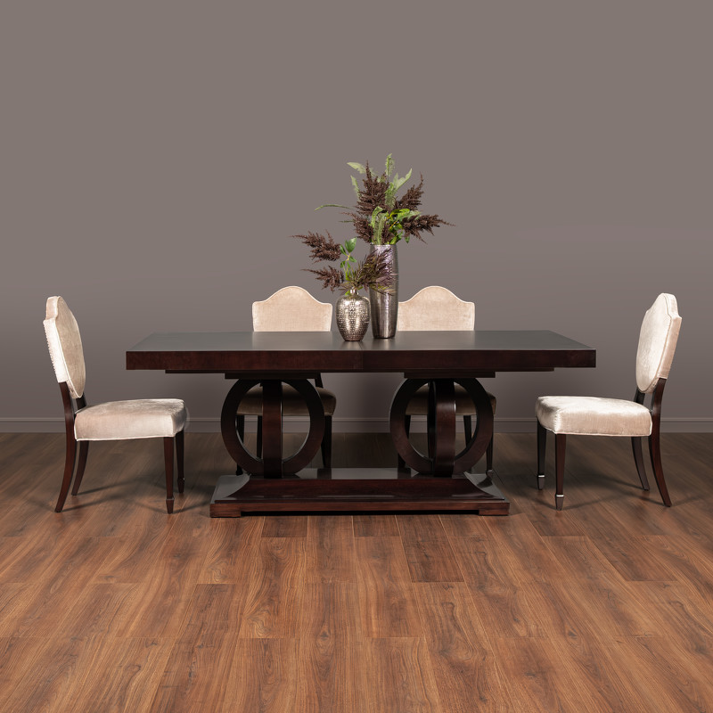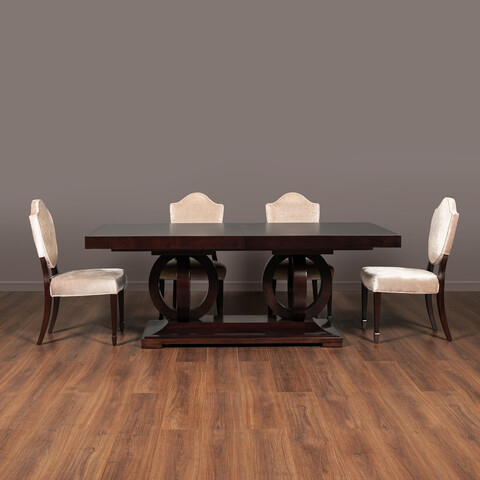 Большой обеденный стол в стиле неоклассика от бренда Fratelli Barri. Роскошная силуэтная база в классическом стиле, основательная столешница - все это делает стол внушительным и грациозным одновременно. Идеально подойдет также для просторного загородного дома. Каркас — массив дерева и высококачественная МДФ высокой плотности, отделка — натуральный шпон вишни тонированный в теплый коричневый цвет. Стол раскладной. Вставка 60 см. Вставка хранится внутри стола. Вставка в той же отделке как столешница. Стол для комфортного размещения 8-12 человек