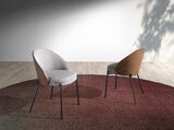 Обеденный стул с обивкой из ткани со спинкой из шпона орехового дерева. Каркас ножек из черной нержавеющей стали. Ткань - TS-SW.Gris02.