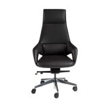 Современное поворотное офисное кресло с сиденьем и спинкой, обитыми черной искусственной кожей. Для дополнительного комфорта предусмотрены подлокотники. Благодаря хромированному основанию из нержавеющей стали и регулируемой по высоте подставке, оно станет незаменимым элементом вашего рабочего места, не жертвуя при этом современным стилем. Колесики обеспечивают дополнительную практичность во время работы или учебы.