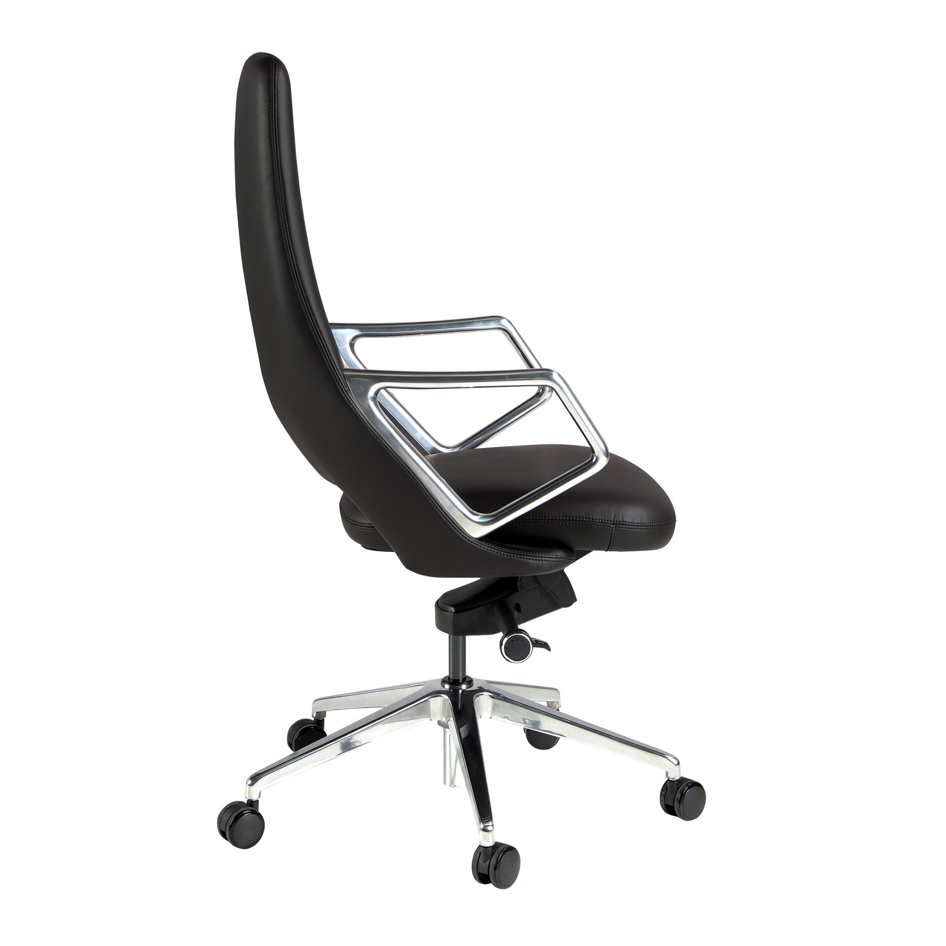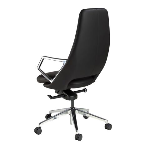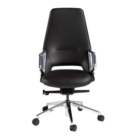 Современное поворотное офисное кресло с сиденьем и спинкой, обитыми черной искусственной кожей. Оно оснащено подлокотниками для большего комфорта. Благодаря ножкам из хромированной нержавеющей стали и регулируемой по высоте спинке, оно станет незаменимым элементом вашего рабочего места, не жертвуя при этом самым авангардным стилем. Колесики обеспечивают дополнительную практичность, необходимую во время работы или учебы.