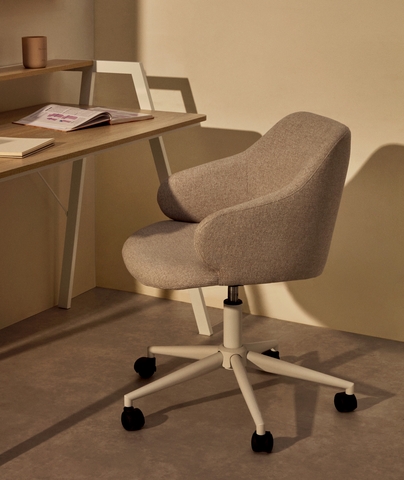 Офисный стул Einara от фабрики La Forma (ex Julia Grup) – для работы дома в полном комфорте. Офисный стул Einara непременно обрадует вас своим удобством. Поворотное сиденье, колеса и регулируемая высота – характеристики, которые отвечают за комфорт. Укороченная спинка добавит стиля вашему кабинету. А благодаря особой обивке с защитой против пятен, сиденье будет чистым, даже при интенсивной эксплуатации. Пользуйтесь лучшими изделиями для работы! Конструкция кресла сборная. Ножка изготовлена из металла, где верхняя часть имеет хромированное покрытие, а разветвление окрашено в черный матовый цвет порошковой краской. Ножка оснащена газлифтом, который меняет высоту кресла в пределах 10 см. Обивка выполнена из прочного текстиля. Ее цвет зависит от выбранной модели – графитовый, светло-серый, розово-бежевый. Состав ткани – 100% полиэстер. Ее характеристики: плотность – 310 г/м2, стойкость к истиранию (циклы Мартиндейла) – более 35000. Эти показатели обеспечивают стойкость обивки к износу, механическим повреждениям. Наполнитель у стула синтетический, с плотностью 35 кг/м3. Максимально допустимый вес нагрузки – 130 кг. Размеры: ширина по спинке – 56 см, ширина сиденья – 55 см, глубина сиденья – 48 см, высота – от 77 до 87 см. Вес изделия – 9,7 кг Потребуется сборка.