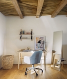 Офисный стул Madina – дизайн, который идеален для домашнего кабинета. Офисный стул Madina поможет вам обустроить рабочее пространство дома с уютом и комфортом. Форма сиденья в виде кресла обеспечит домашнюю обстановку, а включенные в конструкцию опции создадут удобство. В таком кресле рабочие проекты завершатся намного быстрее, ведь вы будете ощущать комфорт в полной мере! Стул состоит из цельного сиденья и стойки с пятью ножками. Стойка изготовлена из металла. Сверху она имеет хромированное покрытие, нижняя часть окрашена в черный цвет матовой порошковой краской. Стойка оснащена подъемным механизмом (газлифтом), который меняет высоту кресла в пределах 7 см. Ножки на колесах. Из диаметр – 5 см. Каркас сиденья сделан из прочной фанеры. Сверху он смягчен пеной плотностью 35 кг/м3, которая обеспечивает среднюю жесткость. Обивка тканевая, светло-серого или графитового цвета (зависит от выбранной модели). Состав ткани: 100% полипропилен плотностью 260 г/м2 Стойкость ткани к истиранию (циклы Мартиндейла) – более 22000. Размеры: ширина сиденья – 45 см, глубина сиденья – 44 см, высота – от 81 до 88 см. Вес изделия – 9,1 кг Максимальная весовая нагрузка – не более 130 кг. Потребуется сборка, инструкция включена в комплектацию.