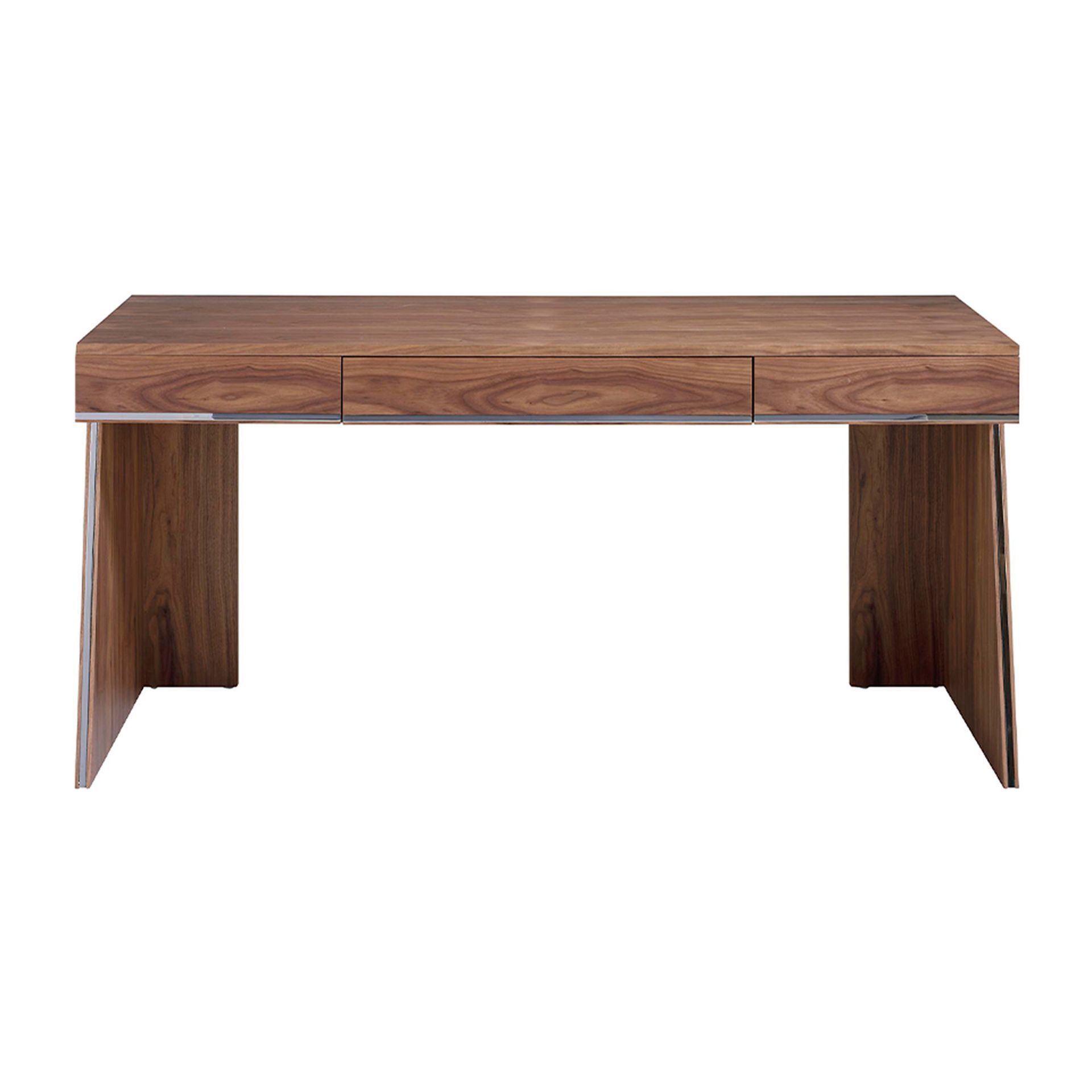 Письменный стол MQ2102 /3217 от фабрики Angel Cerda – без скромности по габаритам, с красотой ореха повсюду. Письменный стол MQ2102 /3217 ни у кого не оставит сомнений в том, что его площадь подойдет для любого вида работы. Совершенно немыслимые габариты здесь определены четкой геометрией форм и хромированной отделкой. Бесподобная красота ореховой древесины, пожалуй, будет немного отвлекать от работы. Но лишь потому, что она прекрасна. И красоте необходимо лучшее место в комнате. Согласны? Письменный стол состоит из прямоугольной каркасной столешницы и двух трапециевидных ножек. Внутреннее наполнение – три выдвижных ящика с мягкой системой открывания. Материал изготовления стола – МДФ, облицованная ореховым шпоном толщиной в 0,5 мм. Нижний край ящиков и внешние грани ножек имеют отделку из хромированной стали, что выглядит эффектно и обеспечивает дополнительную защиту дереву от механический воздействий. Размеры стола: ширина – 160 см, высота – 67 см, глубина – 61 см. Вес изделия – 54 кг. Потребуется самостоятельная сборка. Инструкция и крепеж включены в комплектацию.