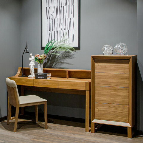 Письменный стол из коллекции Zaragoza от MOD Interiors привлекает внимание строгим лаконизмом и природной теплотой. Модель выполнена в современном европейском стиле. Отделка в премиальном материале — шпоне американского ореха. Шпон раскрывает благородство натуральной древесины, ее богатую текстуру и сложные оттенки, создавая ощущение теплого, но сдержанного уюта. Каркас из высокопрочной МДФ. Четкие линии и тонкие пропорции в стиле традиционного секретера делают модель одновременно современной и традиционной. Благодаря продуманной организации рабочего пространства вместительные ящики обеспечивают комфортное хранение, подчеркивая элегантность и функциональность. Стол оснащен 3 выдвижными ящиками с системой push-to-open. Ящики снабжены направляющими системы soft-close. Уникальная система последнего поколения добавляет плавность открывания/закрывания.