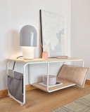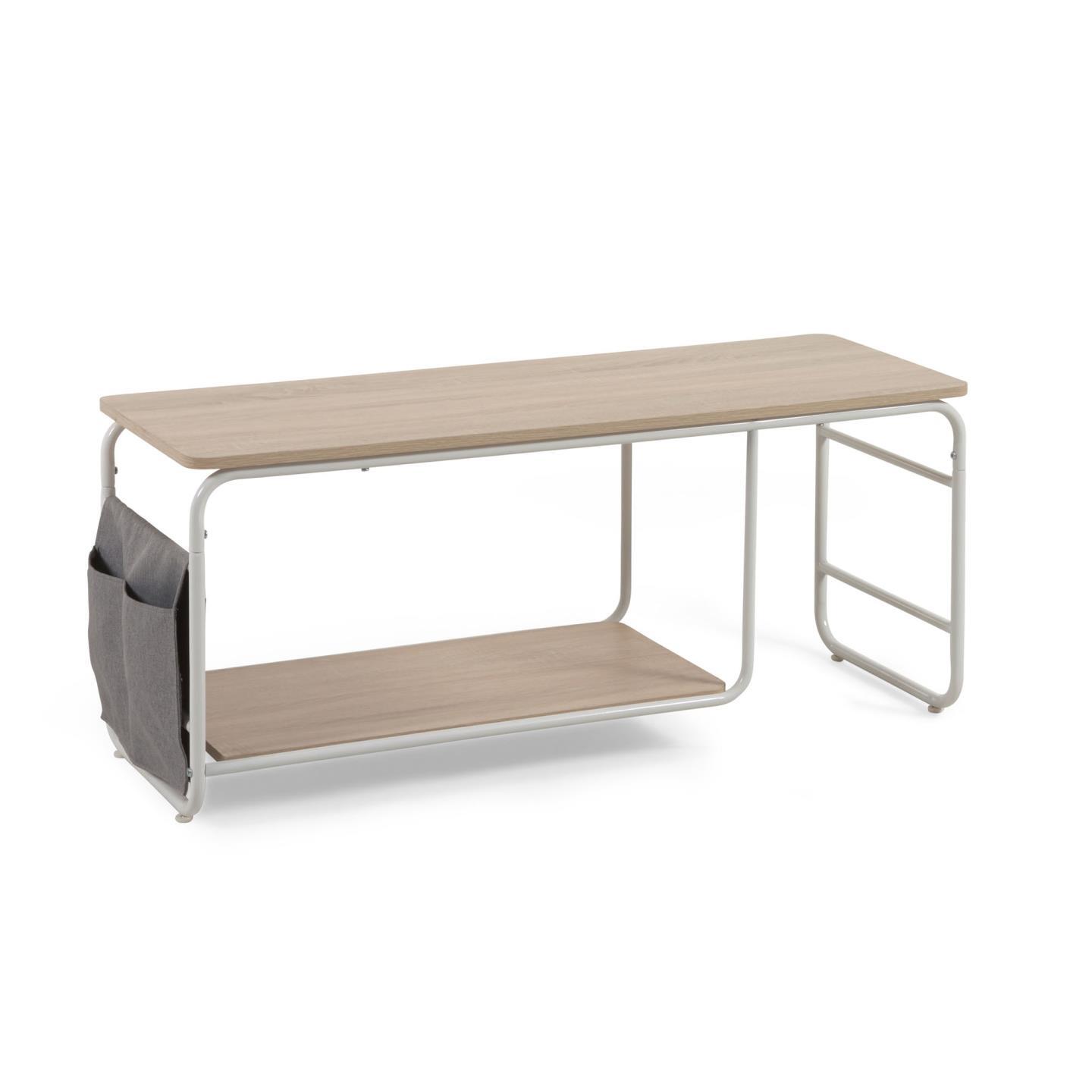 Меламиновая тумба под телевизор с меламиновой отделкой под дерево. Металлическая конструкция окрашена в белый цвет. Имеются тканевые карманы. Идеально подходит для максимально эффективного использования пространства и добавления стиля в вашу гостиную. Сочетайте этот предмет с остальной частью коллекции, чтобы завершить образ.