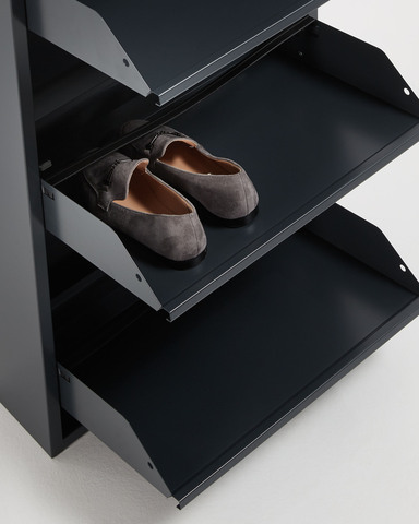 Полка для обуви Rox от фабрики La Forma (ex Julia Grup) – вместительная и практичная, без сложностей в исполнении. Полка для обуви Rox представляет собой целый шкаф, в который однозначно поместится сезонная обувь всех членов семьи. Приспособленная под постоянную и довольно агрессивную эксплуатацию, она порадует еще и своим простым обслуживанием. Для совместимости с интерьером, предлагаем три цвета – серый, черный, белый. Сделайте своей обуви подарок – подарите ей просторный дом! Полка полностью металлическая. Она имеет каркасную конструкцию, в которой находится три, четыре или пять откидывающихся ящика одинаковых по размеру (зависит от выбранной модели). Высота каждого – 32,5 см. Максимальная нагрузка на ящик – 3 кг. Общая вместимость – 6-10 пар обуви. Матовое покрытие по порошковой технологии обеспечивает эстетичный внешний вид с идеально ровной поверхностью. Полка легко чистится от загрязнений, не портится от влаги, механических воздействий. Размеры: ширина – 50 см, высота – 103, 136, 169 см, глубина – 15 и 39,5 см (в закрытом или открытом виде) Вес изделия – 12,6; 16,2; 17,5 кг Изделие поставляется в собранном виде.