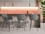 Полубарный стул A116TAB /4089 от фабрики Angel Cerda – показательное удобство и металлическая надежность. Полубарный стул A116TAB /4089 создан для вашей зоны отдыха. Его дизайн на удивление универсальный и, при этом, не лишен своих особенностей. Обтекаемая форма и высокие подлокотники – гарантия вашего удобства, а изящная металлическая стойка – современная красота и надежность во время использования. Пусть ваша барная зона будет гармоничной и располагающей к отдыху! Стул сборный, состоит из металлической основы и каркасного сиденья. Основа окрашена в черный цвет матовой порошковой краской, имеет трубчатую структуру, с заужением к низу. Высота ножек – 60 см. Они дополнены поперечными перекладинами, которые обеспечивают надежность, комфорт ногам. Предусмотрены накладки, которые защищают напольное покрытие от повреждений. Каркас сиденья сделан из прочной фанеры. Он смягчен синтетическим наполнителем плотностью 25 кг/м3 и обшит гладким текстилем серого цвета. Шов выделен черным кантом, который четко выделяет геометрию сиденья. Обивочный материал обладает высокой износостойкостью и легко чистится от загрязнений. Максимальная весовая нагрузка на стул не должна превышать 120 кг. Размеры: ширина – 60 см, высота – 96 см, глубина – 48 см, высота ножек – 57 см. Сборка минимальная. Инструкция и крепеж в комплекте.