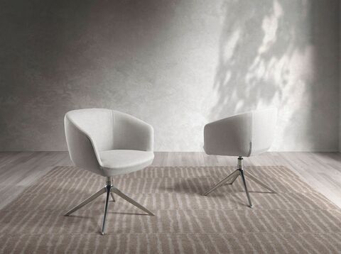 Вращающееся кресло с подлокотниками современного дизайна, обитыми светло-серой тканью. Вращающийся стул в авангардном, но вневременном стиле, со структурой и ножками из хромированной нержавеющей стали, который станет незаменимым в вашей столовой. Ткань - TS-E.Gris02.