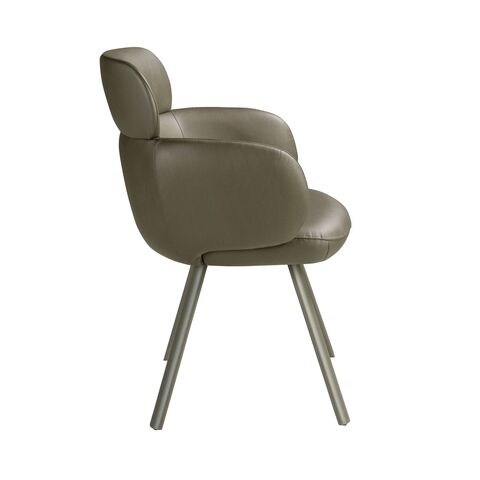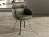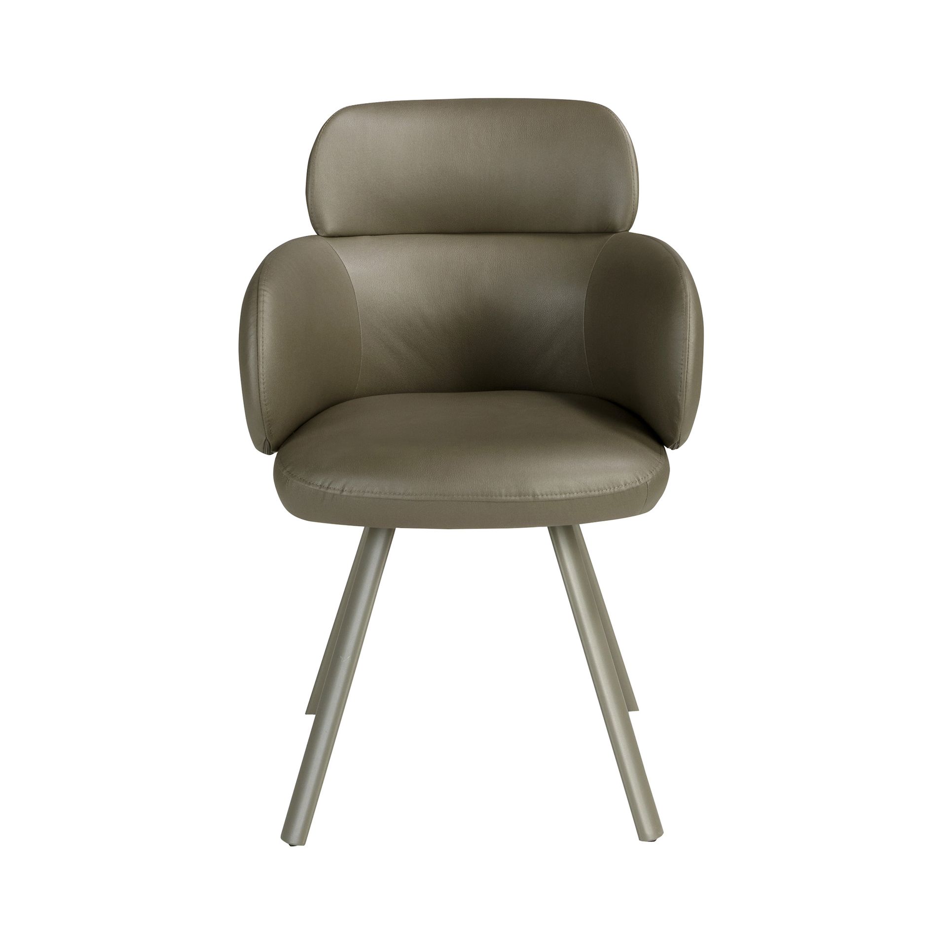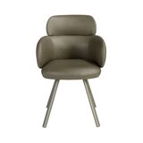Современный поворотный стул с подлокотниками, сиденье и спинка которого обиты оливково-зеленой искусственной кожей. Ножки из зеленой нержавеющей стали, сочетающие в себе авангардный и вневременной стиль, сделают его незаменимым элементом вашей кухни или столовой. Этот стул от Анхеля Серда сочетает в себе уникальный и индивидуальный стиль бренда с максимальным комфортом и устойчивостью благодаря высокому качеству обивки и оригинальной конструкции ножек.