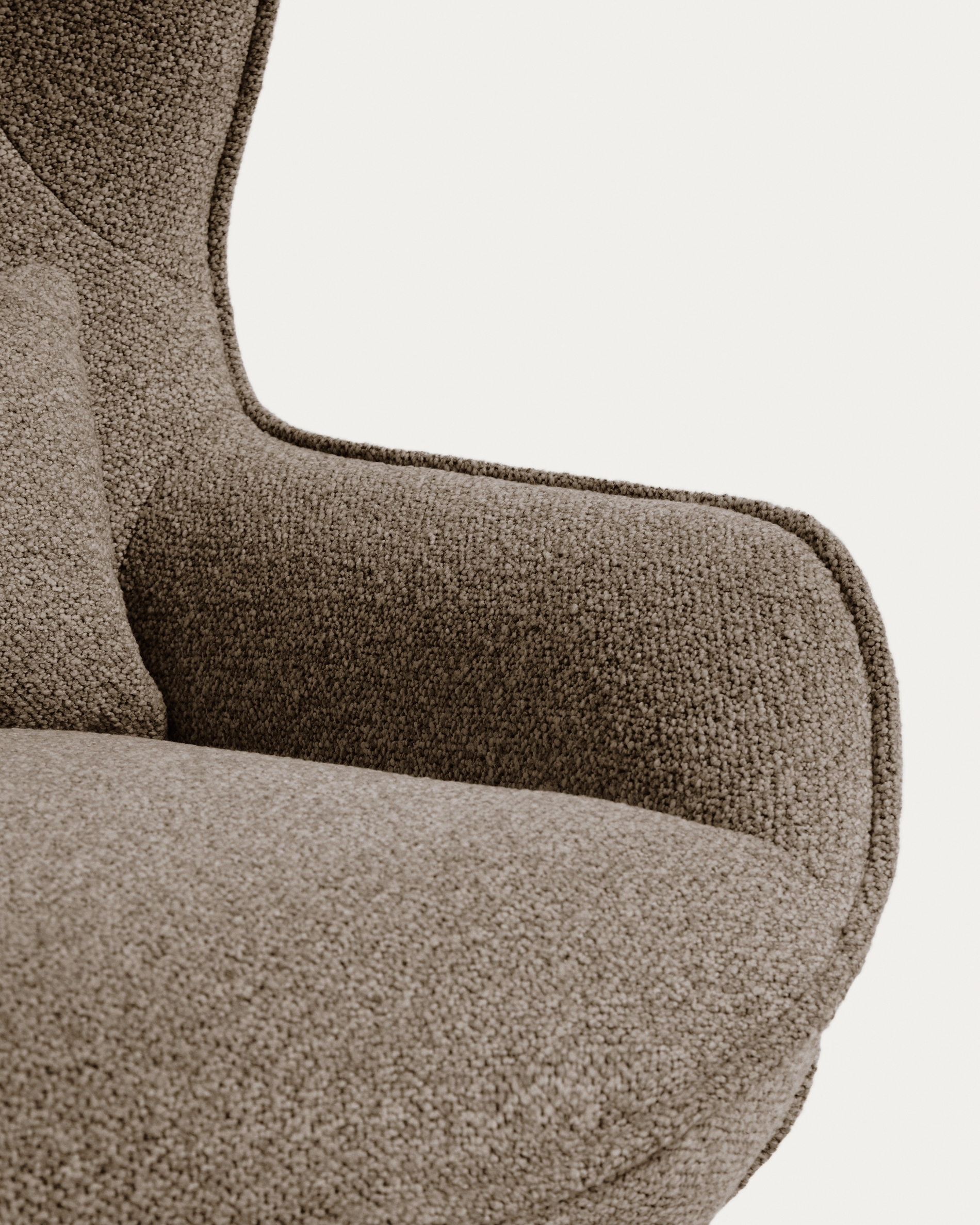 Кресло Sorile сочетает в себе комфорт, текстуру и внимание к происхождению материалов. Оно обито двухцветной шенилловой тканью с крупной структурой и эффектом букле, что обеспечивает визуальную глубину и мягкость на ощупь, предназначенной для повседневного использования. Ткань обладает высокой износостойкостью, хорошей светостойкостью и водоотталкивающей обработкой, что позволяет использовать ее длительное время без опасений. Поставщик ткани сертифицирован по стандарту OEKO-TEX® STANDARD 100, что гарантирует экологическую безопасность и защиту окружающей среды.