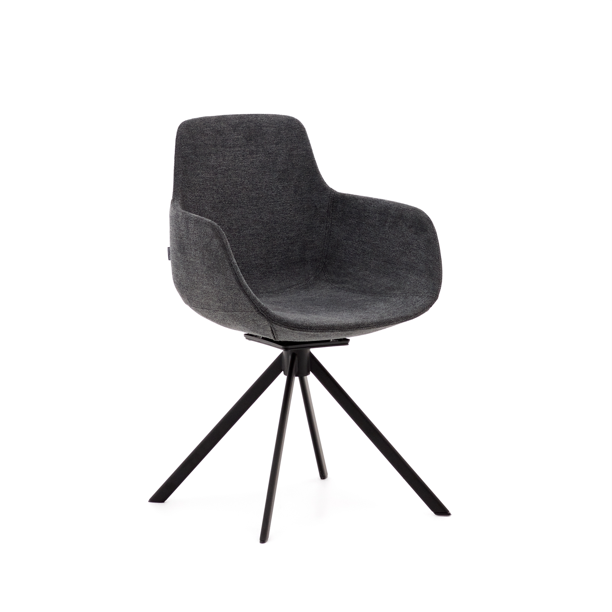 Поворотное рабочее кресло Tissiana из темно-серой синели и черного матового алюминия