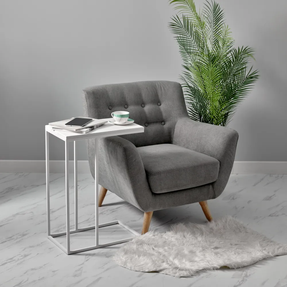 Придиванный столик Loft станет настоящим дополнением к интерьеру в современном стиле. Столик не займет много места и легко поместится рядом с диваном или креслом. Конструкция столика позволяет расположить столешницу прямо над диваном или боковиной дивана, что достаточно удобно и функционально. Столик выполнен из прочного ЛДСП оттенка белый мрамор, что придает ему изящный вид, а белые металлические ножки добавляют конструкции дополнительную изящность и устойчивость. Будьте уверены, что столик Loft станет удачным приобретением для вашего уютного уголка.