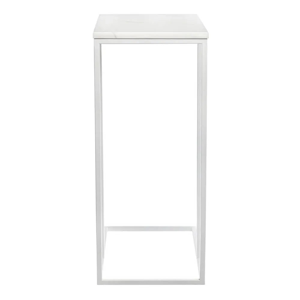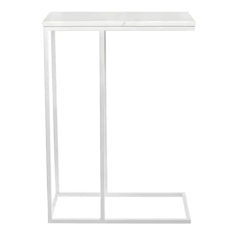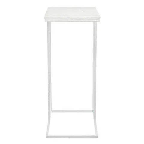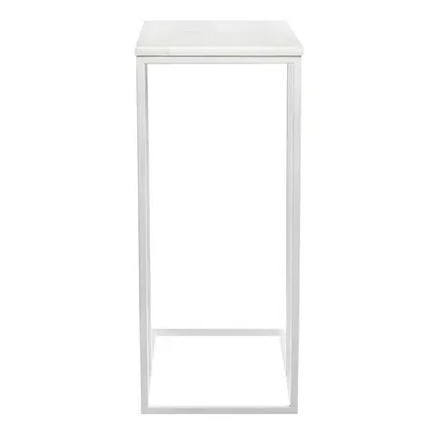 Приставной столик Loft 50x30см, белый мрамор с белыми ножками