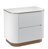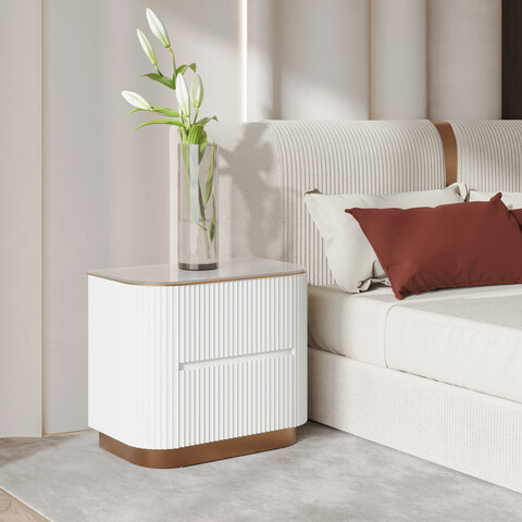 Прикроватная тумбочка от итальянского бренда Fratelli Barri. Благодаря двум выдвижным ящикам можно обеспечить удобное и организованное хранение. Ящики оснащены механизмом "push to open". Тумба изготовлена из высококачественного МДФ, в отделке матовый лак, дополнена стеклянной столешницей и металлическими деталями в цвете бронза