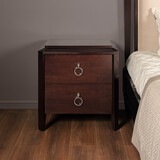 Прикроватная тумбочка с 2 ящиками в стиле неоклассика от итальянского бренда Fratelli Barri. Вместительный вариант для европейской спальни. Каркас — массив дерева и высококачественная МДФ высокой плотности, отделка — натуральный шпон вишни. Все выдвижные ящики снабжены скрытыми направляющими. Ящики оснащены доводчиками для плавного закрывания. Корпус ящиков в более светлой отделке дерева. Цвет фурнитуры - хром. Модель принадлежит к коллекции мебели Mestre в стиле неоклассика от Fratelli Barri. Здесь вы можете найти мебель для гостиной, столовой и спальни: сотни вариантов доступны для комбинации друг с другом.
